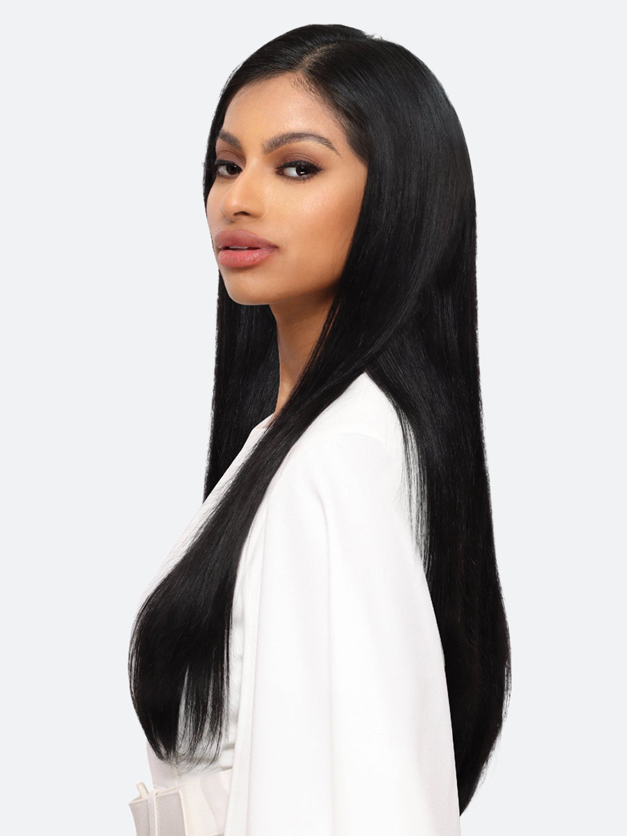Our highest quality 100% virgin remy hand tied lace frontal wig. 30" length natural straight style.
